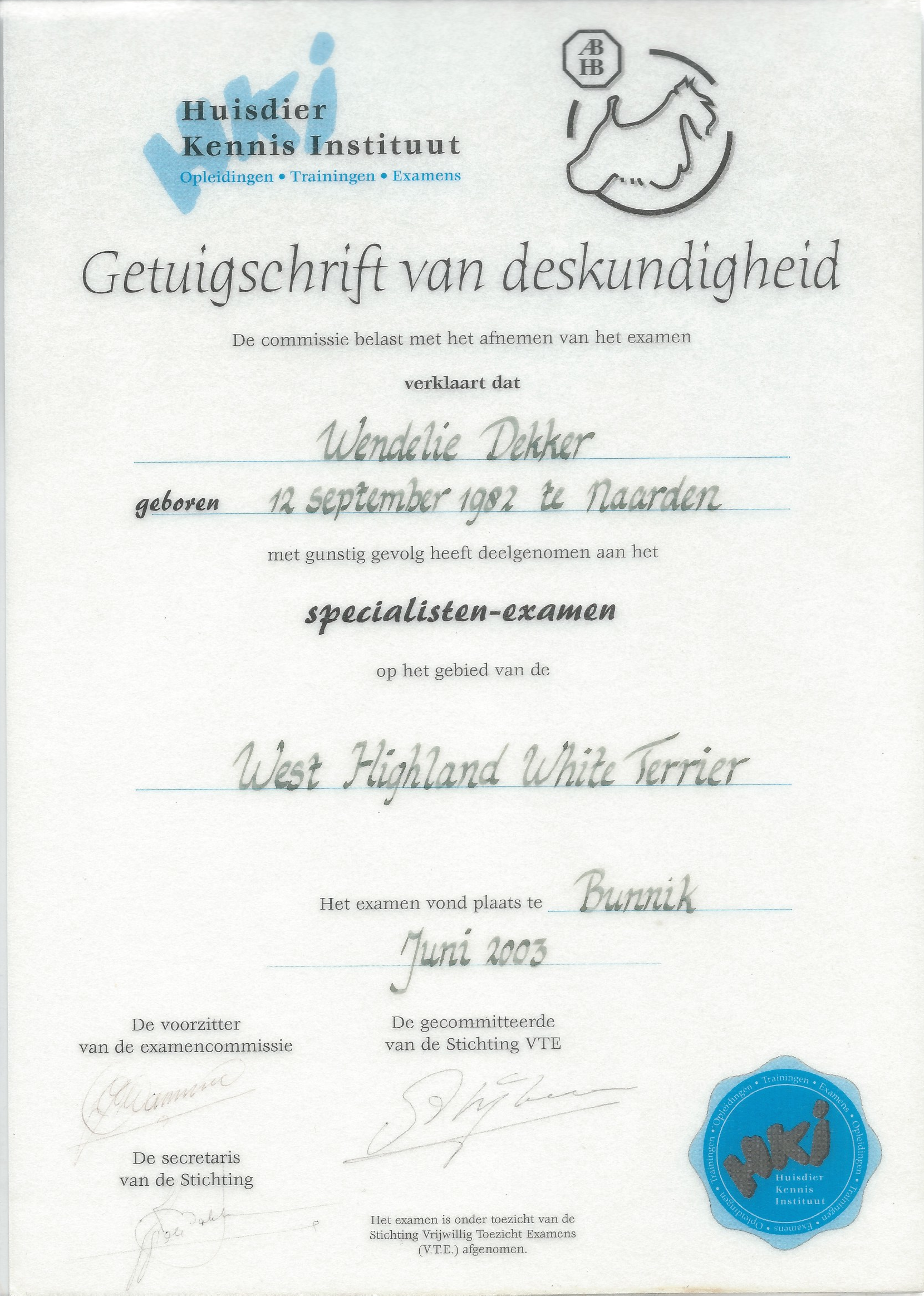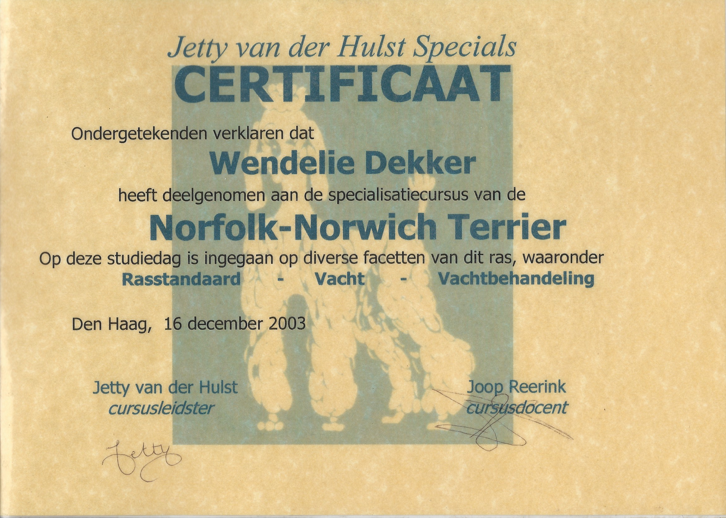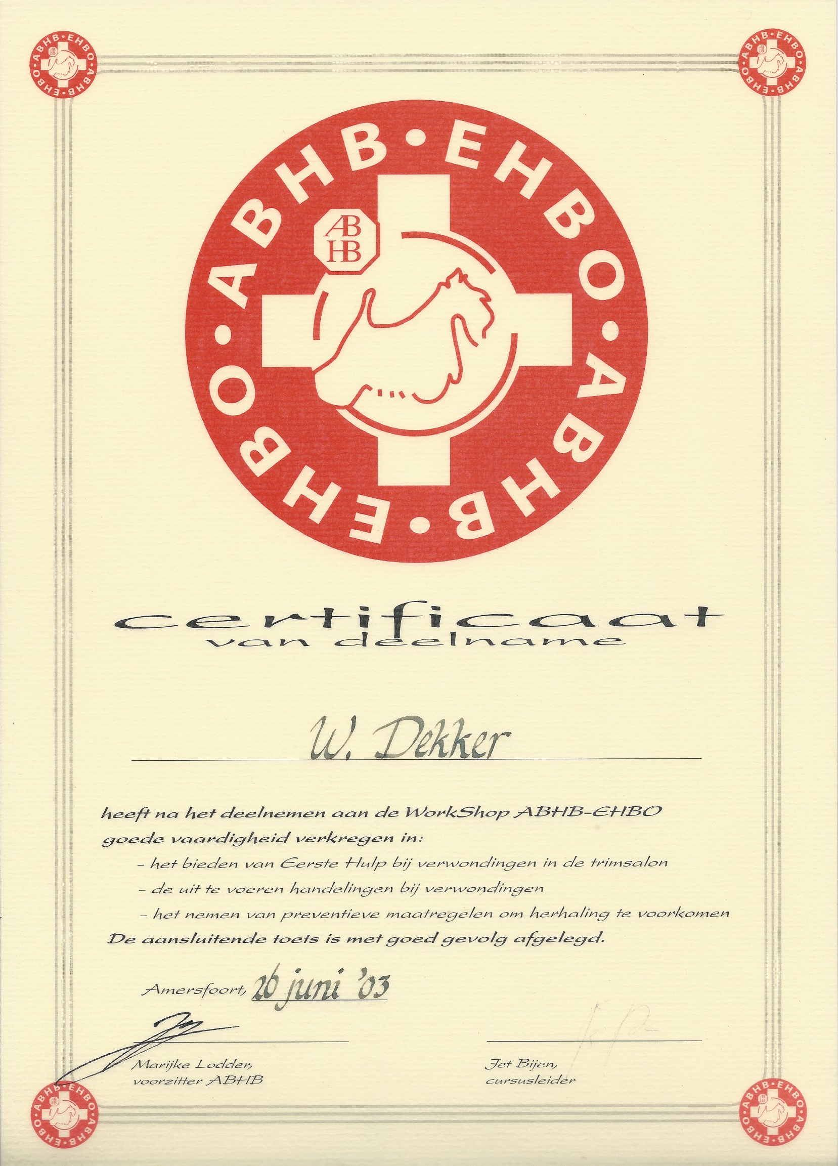 Certificaat commerciële vaardigheden & de juiste trimming voor show-, wedstrijd- en huishond